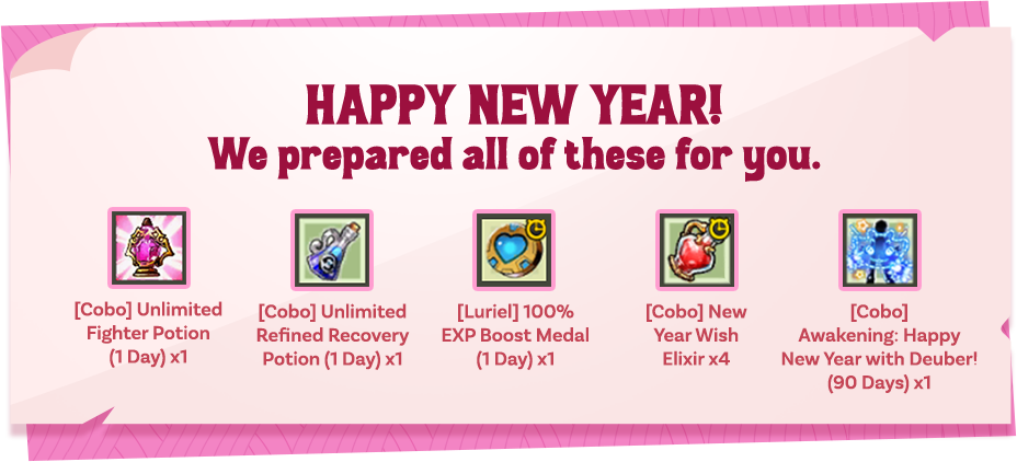 HAPPY NEW YEAR, ELPEEPS! DON’T MISS OUT ON THE FUN, ACTIVE UNTIL 01/01/2026 (00:00 – 23:59 PST) 00 DAYS : 00 HOURS : 00 MINUTES : 00 SECONDS Level 10 or higher; per account. *Mailed rewards will be deleted on 01/01/2026 (23:59 PST). Get special deals on New Year’s Day!