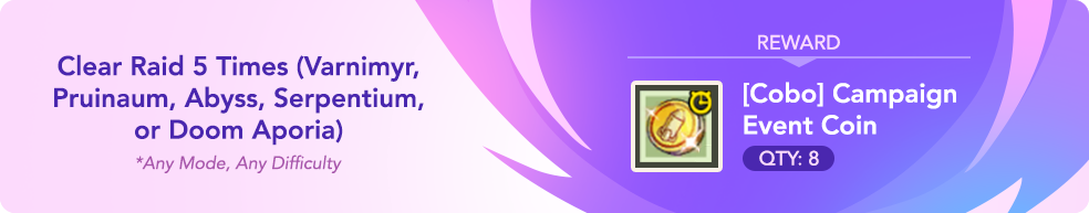 Clear quests to receive [Cobo] Campaign Coins and more!