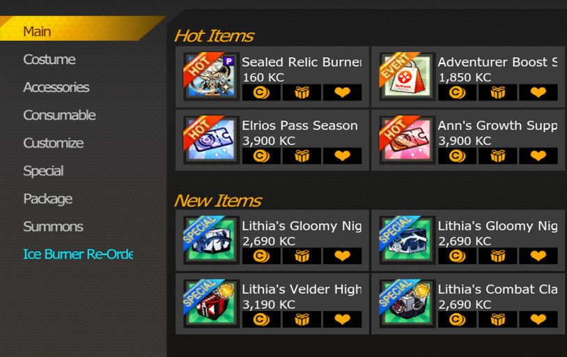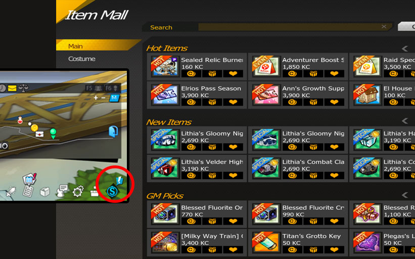 The Item Mall gives you the option to power up and customize your character through purchasable items.