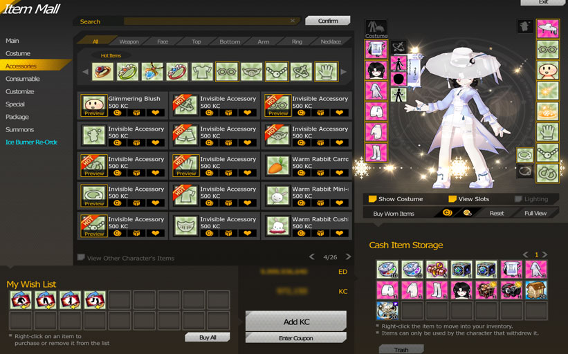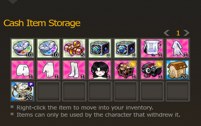 Items purchased are placed into the character’s Cash Item Storage. You can transfer them to your inventory at anytime!