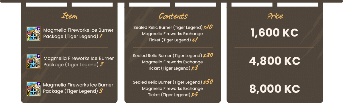 *All unused Magmelia Fireworks Exchange Ticket (Tiger Legend) will be deleted on 10/21/2025 (23:59 PDT).