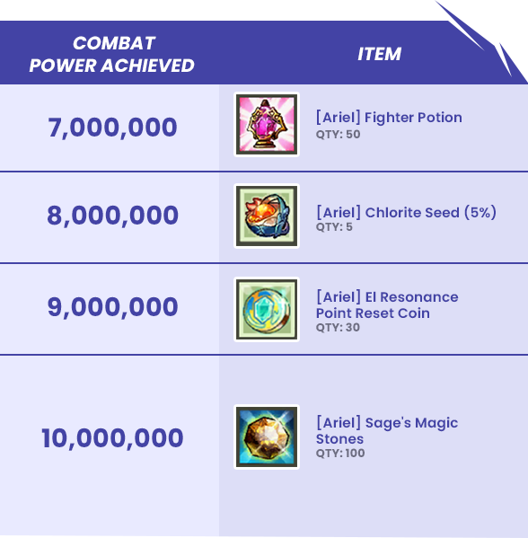 Achieve combat power milestones and receive useful rewards!