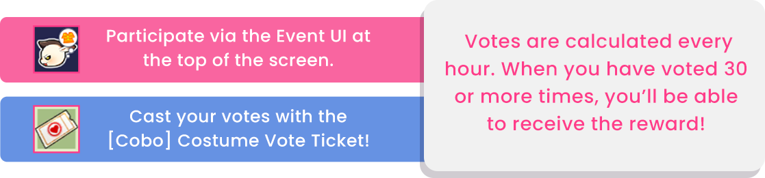 to earn 3 [Cobo] Costume Vote Tickets!